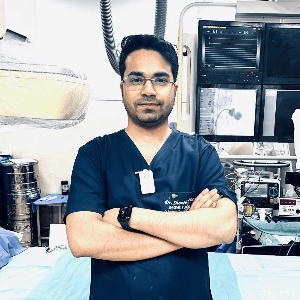 His clinical expertise covers a wide range of cardiac problems such as heart attacks, arrhythmias, coronary artery disease, and structural heart disorders. Dr. Shoaib specializes in primary and complex angioplasties, coronary imaging (IVUS/OCT), transseptal procedures, and electrophysiology-related interventions, ensuring safe and timely care during both emergencies and planned treatments.